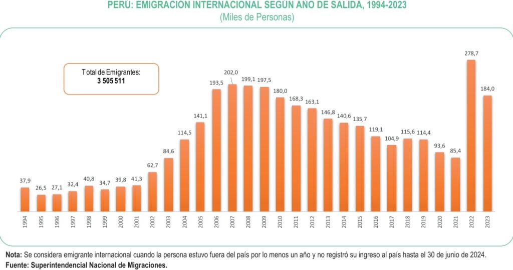 El último informe de “Evolución de ingresos y salidas” del INEI, muestra que en el primer trimestre del 2025 entraron 1,069,500 peruanos, un 10.2% más que en el mismo período del 2024, pero también que salieron más peruanos: 1,109,500, un incremento de 8.4%. El saldo migratorio fue negativo en -39,966 personas, es decir, se fueron […]