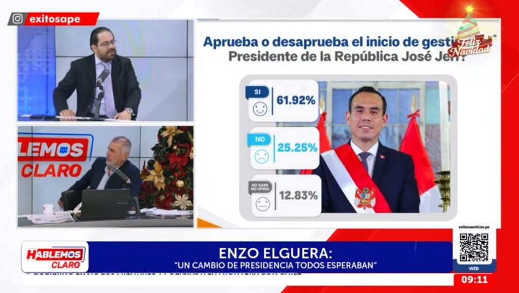Una nueva y reveladora empresa de encuestas apareció la mañana del lunes 1º de diciembre, en el programa «Hablemos Claro» de Nicolás Lúcar en Exitosa Noticias. Enzo Elguera Echegaray, CEO de Imasolu, presentó su nueva en encuesta, que indica que el presidente José Jerí subió su aprobación del 35% al 61.92%, y un 25.66% cree […]