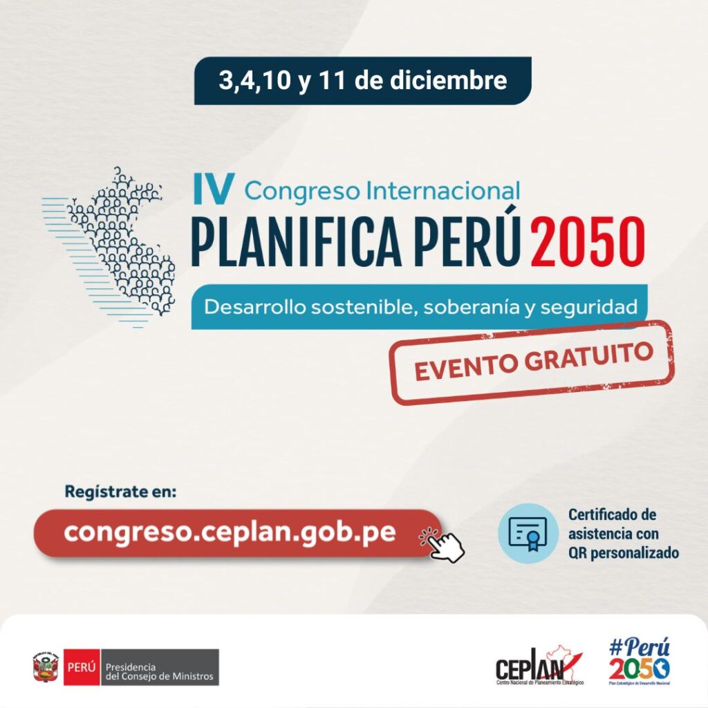 Por cuarto año consecutivo, el Centro Nacional de Planeamiento Estratégico (Ceplan) reconocerá a los equipos de planeamiento más destacados del sector público durante el IV Congreso Internacional Planifica Perú 2050 “Desarrollo Sostenible, Soberanía y Seguridad”, que se realizará los días 3, 4, 10 y 11 de diciembre con participación gratuita para la ciudadanía. Inscríbete aquí: https://ceplan.pe/25e14D El […]