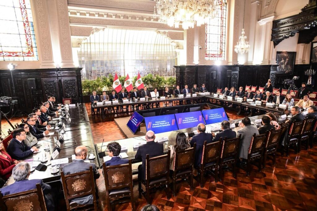 En la mañana del jueves 18, se realizó la primera reunión del Acuerdo Fiscal por el Crecimiento Sostenible, en donde participaron la ministra de Economía y Finanzas, Denisse Miralles, junto con personajes del Congreso, gobiernos regionales y locales, entidades constitucionalmente autónomas, sector privado, academia y exministros de Economía. Se llevó a cabo en Palacio de […]