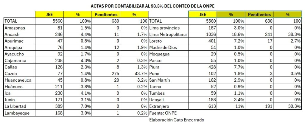 Segunda vuelta se definirá en mesa: Al conteo del 93.3% de la ONPE, Sánchez va adelante por más de 13 mil votos