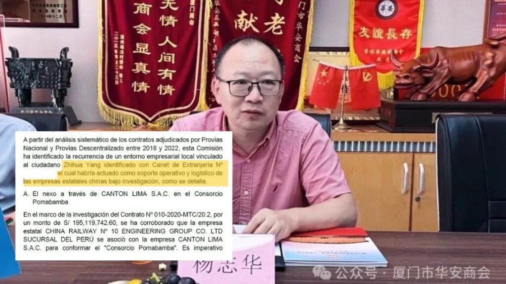 Las investigaciones señalan que Zhihua Yang, es representante de diversas firmas asiáticas, y habría operado bajo una modalidad de concertación y concusión para facilitar la adjudicación de contratos millonarios. Según el informe final de la comisión, estas prácticas guardan similitud con el accionar del antiguo «Club de la Construcción«, que encabezaba Odebrecht y Graña y Montero,