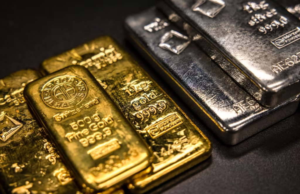 Oro y plata Un lingote de oro de un kilogramo y otro de quinientos gramos junto a lingotes de plata de un kilogramo en las instalaciones del comerciante de oro The Vaults Group, en Barcelona, España, el lunes 28 de abril de 2025. (Angel Garcia)