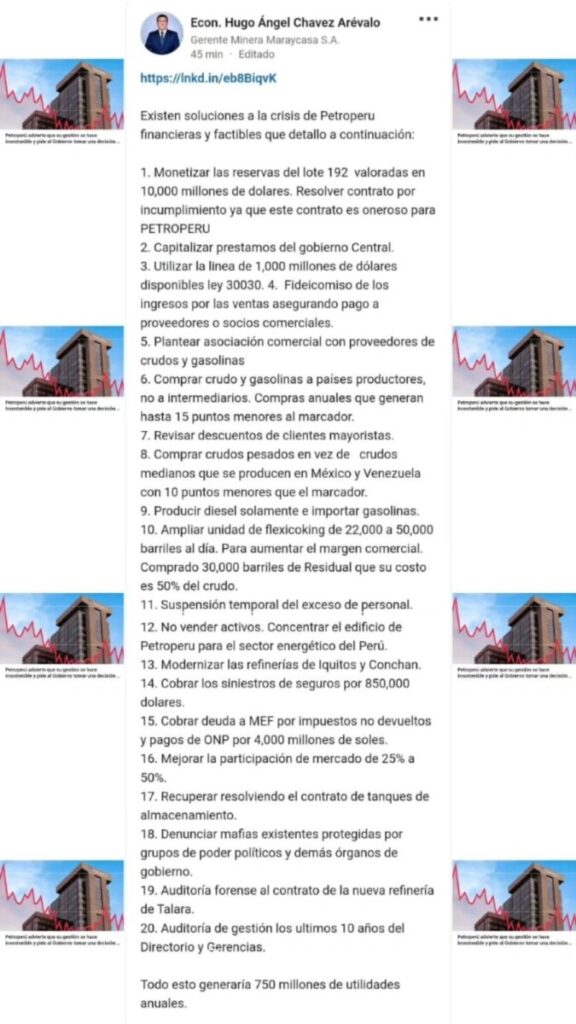 Por Hugo Ángel Chávez Arévalo, ex gerente general de Petroperú