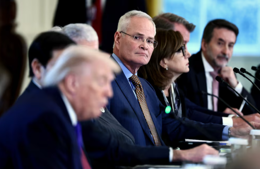 Las cuestionables cifras petroleras de Venezuela son ahora las de Trump. Darren Woods durante una reunión con ejecutivos petroleros en la Casa Blanca con la presencia del presidente Trump el 9 de enero. Fotógrafo: Jim Lo Scalzo/EPA/Bloomberg(Bloomberg/Jim Lo Scalzo)